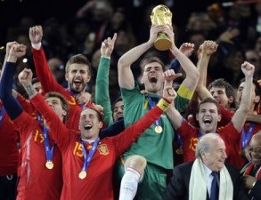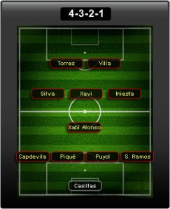 Banyak pengamat berpendapat, Spanyol 2010 tak ubahnya klub Barcelona yang menjuarai Liga Champions tahun lalu. Hal ini ditandai dengan banyaknya anak-anak Barcelona yang masuk ke dalam skuad La Furia Roja. Dimana dari sebelas pemain inti Spanyol, tujuh diantaranya merupakan para pemain F.C. Barcelona. Mereka adalah : Xavi, Iniesta, dan Busquets di lapangan tengah, Pique dan Puyol di posisi belakang, serta David Villa dan Pedro Rodriguez sebagai striker. Selain itu gaya permainan menyerang ala The Catalans, juga dipercaya sebagai kunci kemenangan Spanyol kali ini.