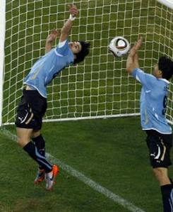 Uruguay menjadi tim Amerika Latin terakhir yang tersingkir. Pertarungan mereka melawan Ghana di babak perempat final, menjadi partai paling dramatis di sepanjang turnamen. Uruguay yang tertinggal lebih dahulu, berhasil menyamakan kedudukan pada menit 55. Lewat kaki Diego Forlan, bola tendangan bebas mengubah kedudukan menjadi 1-1. Malapetaka terjadi di akhir babak perpanjangan waktu. Kemelut di daerah pertahanan Uruguay, dua kali berhasil ditepis Suarez yang berdiri meronda di depan gawang. Namun tepisan terakhir yang menggunakan tangan, berakibat di kartumerahkannya ia oleh wasit. Pelanggaran ini sekaligus menghadiahkan Ghana tendangan dua belas pas. Untung tak dapat diraih, malang tak dapat ditolak, kemenangan Ghana yang sudah di depan mata, menjadi buyar setelah Asamoah Gyan gagal mengeksekusi penalti. Skor 1-1 akhirnya bertahan hingga wasit meniupkan peluit panjang. Dan untuk menentukan tim yang berhak maju ke babak selanjutnya, adu penalti-pun terpaksa digelar. Lagi-lagi Ghana bernasib sial. Dua eksekutor mereka, Mensah dan Adiyah, gagal menceploskan bola ke gawang lawan. Tendangannya berhasil ditangkis kiper Uruguay, Fernando Muslera. Jadilah kegagalan ini menjadi tangisan seluruh masyarakat Afrika, yang sejak babak perdelapan final hanya diwakili Ghana.