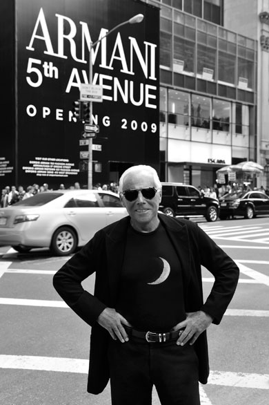 Giorgio Armani lahir di Piacenza pada tanggal 11 Juli 1934. Menurut sebagian orang, dia merupakan salah satu alasan mengapa akhirnya Milan menjadi pusat mode dunia. Pada tahun 1975, dia mendirikan House of Armani. Salah satu dari sedikit rumah mode yang mampu mengembangkan tujuh sub-label, dengan jaringan retail tersebar di lebih dari 37 negara. Armani merupakan perancang busana yang memiliki ketertarikan terhadap dunia olahraga. Minatnya itu telah mengantarkannya sebagai seorang desainer kaos olahraga terbesar saat ini. Salah satu klub sepak bola yang mengenakan hasil rancangannya adalah Chelsea F.C. Selain itu Armani juga dipercaya mendesain seragam kontingen Italia untuk Olimpiade 2012 mendatang. Disamping bisnis fesyen, kini Armani juga mengelola tujuh buah hotel mewah dan resort. Salah satu hotelnya yang terkenal berada di bangunan tertinggi dunia, Burj Khalifa Dubai. Menempati 39 lantai terbawah, Armani menyediakan 160 guest room and suite, serta 144 residence. Pada tahun 2001, majalah mode Vogue menempatkannya sebagai tokoh adibusana tersukses di Italia.