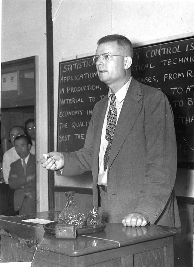 Edwards Deming memberikan seminar di Jepang (sumber : http://www.deming.org)