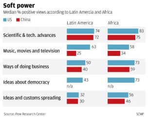 Sedangkan China, mungkin saat ini sebagian besar masyarakat menganggap kalau negara itu merupakan negara otoriter, dimana pemerintahnya mengekang kebebasan dan hak-hak warga negara. Padahal kalau kita melihat keadaan yang sebenarnya, kehidupan masyarakat disana tak buruk-buruk amat. Namun karena masyarakat non-China – terutama orang-orang Barat – sering dicekoki oleh berita-berita miring, jadilah imej China di mata dunia tak terlalu bagus. Oleh karenanya, saat ini China mulai membenahi kekayaan budaya mereka dan memperkenalkannya kepada dunia. Untuk mempromosikan kultur Tiongkok, China telah meluncurkan pusat Konfusius di beberapa negara. Ini seperti Jepang beberapa dekade lalu, yang mendirikan Pusat Budaya Jepang di seluruh dunia.