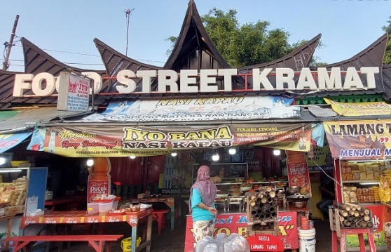 Selain kios-kios buku, di simpang lima Senen juga berjajar penjual nasi kapau. Setidaknya ada sekitar 20 penjual nasi kapau yang menjajakan dagangannya secara terbuka. Ini mirip seperti los lambung di pasar-pasar di Sumatera Barat. Sebelum restoran nasi kapau kekinian menjamur di seantero Jabodetabek, disinilah orang dulu mencari nasi khas Bukittinggi itu. Selain gulai tunjang, tambusu, dan itik lado hijau, disini juga tersedia penganan khas Minang lainnya seperti bubur kampiun, es tebak, dan lemang tapai. Berdasarkan penelusuran penulis, rata-rata pedagang yang berjualan disini sudah masuk generasi kedua. Orang-orang tua mereka, dulu mengawalinya di tahun 1960-1970-an. Warung Ibu Kacamata yang menjadi langganan saya, sudah ada sejak tahun 1965. Pada tahun 2017, melalui program corporate social responsibility-nya, PT Mayora merenovasi kios-kios disini. Sehingga area yang kini dikenal sebagai Food Street Kramat itu menjadi lebih tertata.