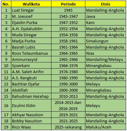 Orang Mandailing-Angkola juga salah satu suku yang cukup banyak mendiami kota Medan. Berbeda dengan orang Minang yang memilih jalur perdagangan, kedatangan orang Mandailing ke Medan bertujuan untuk menjadi aparatur sipil negara (ASN). Ini berkait erat dengan cara pandang mereka yang memposisikan ASN sebagai profesi idaman. Tak salah kalau banyak dari kelompok ini yang kemudian menjadi walikota Medan. Berdasarkan catatan penulis, dari 19 orang walikota, 10 diantaranya berasal dari etnis Mandailing-Angkola (Lihat tabel). Dibandingkan dengan sub-suku Batak lainnya : Toba dan Simalungun, orang Mandailing memiliki kedekatan historis dengan bangsawan dan ulama Melayu. Itulah mengapa hingga hari ini mereka seperti beroleh “privelese” dalam menduduki jabatan di pemerintahan. Disamping orang Minang dan Melayu, kelompok Mandailing juga aktif dalam organisasi keislaman di kota Medan. Jika orang Minang berafiliasi ke Muhammadiyah dan Perti, maka orang Mandailing banyak yang menjadi pengurus Al Washliyah. Aliansi Umat Islam Kota Medan yang menggelar aksi kemarin, mayoritas berasal dari ketiga etnis ini.